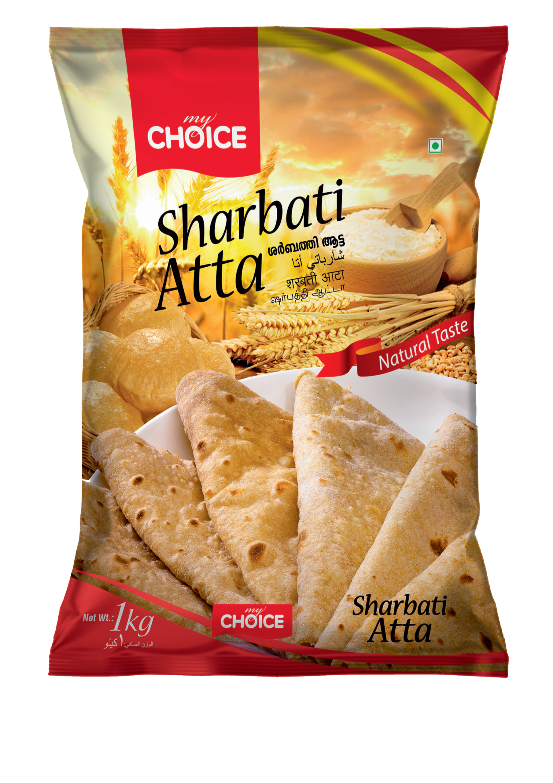 My Choice Sharbati Atta is made from handpicked Sharbati wheat grown in the fertile soils of Madhya Pradesh—known for its natural sweetness, golden grains, and exceptional softness. The wheat is gently stone-ground to preserve its rich fibre, nutrients, and authentic aroma.